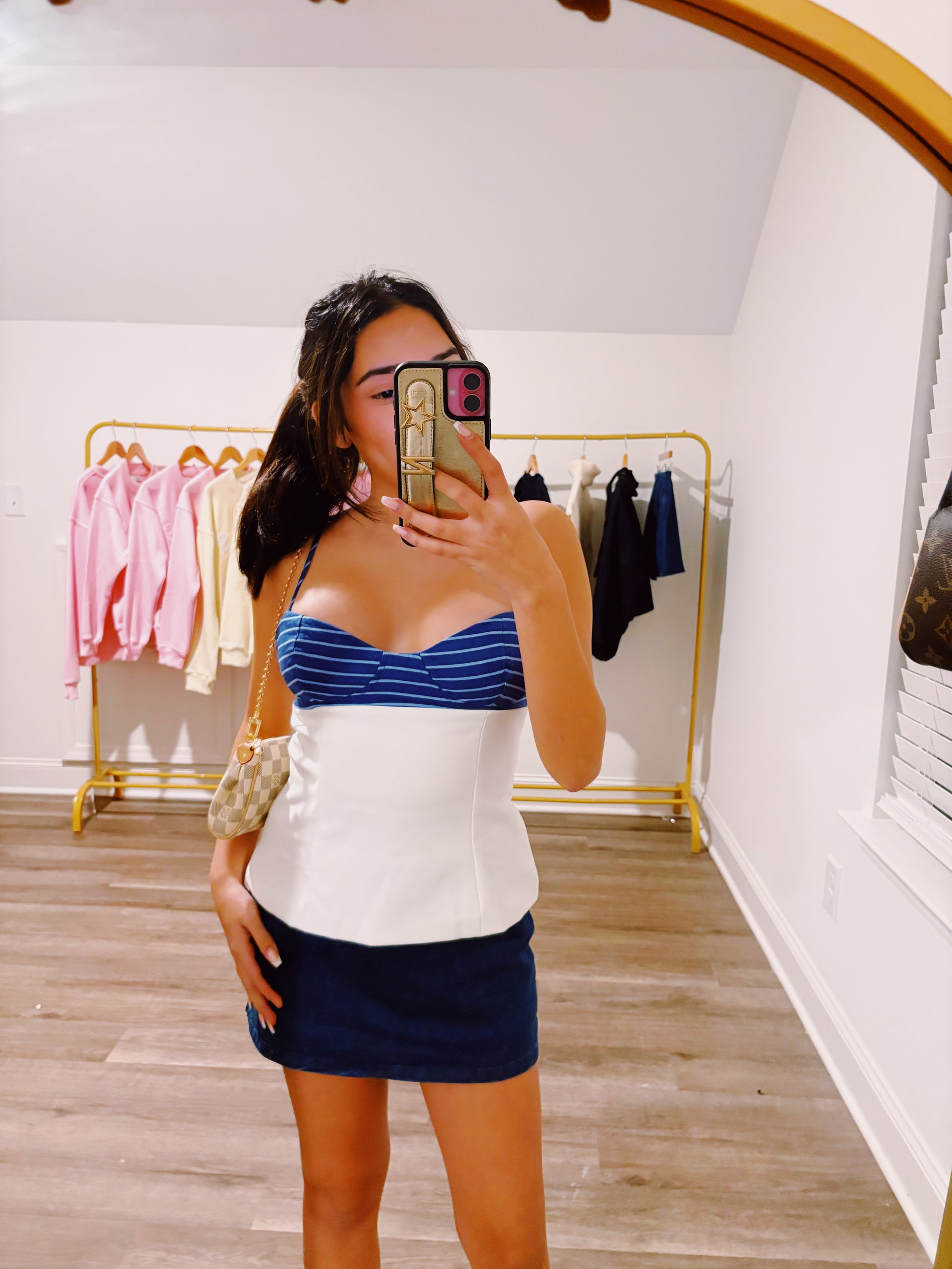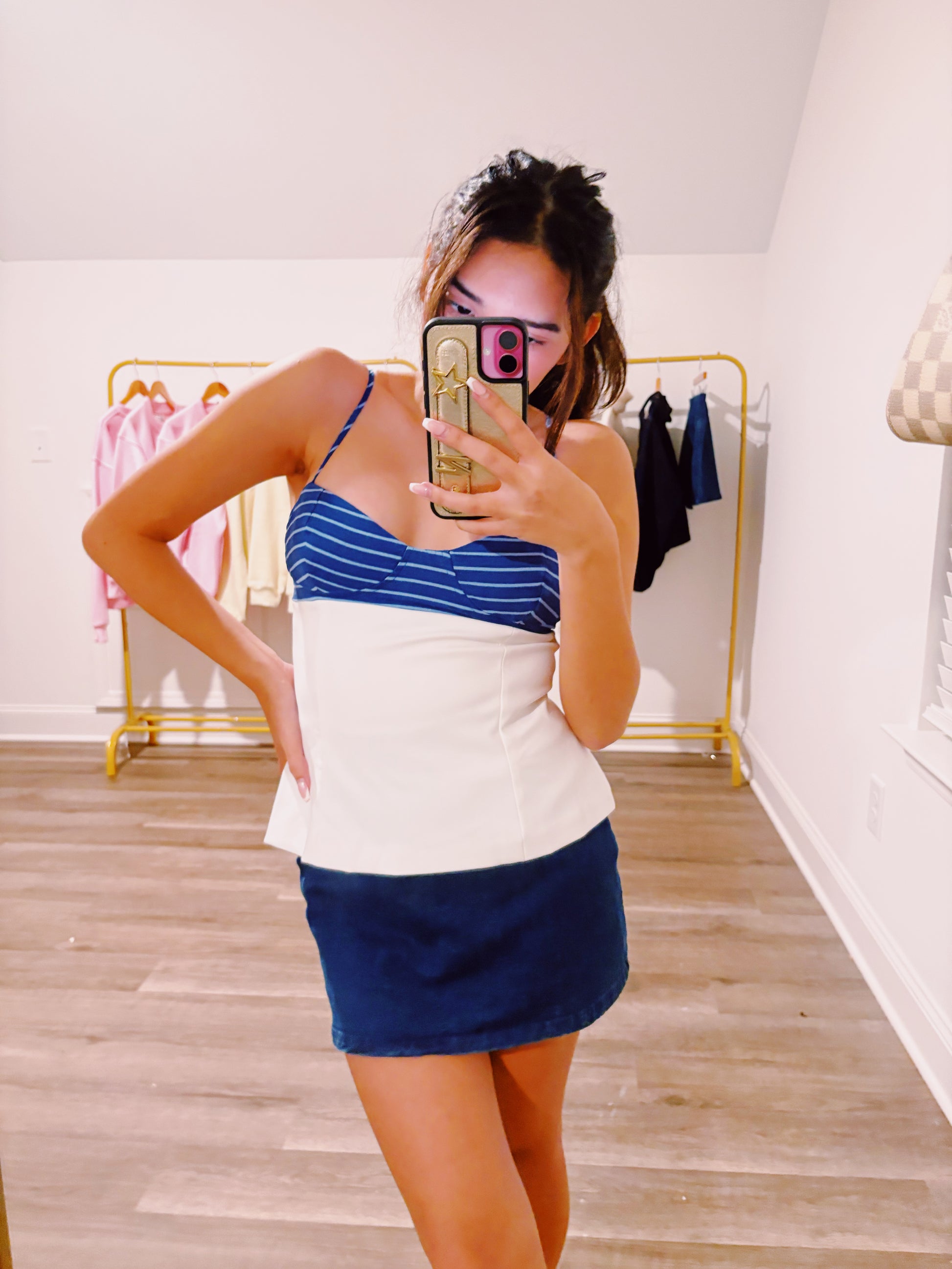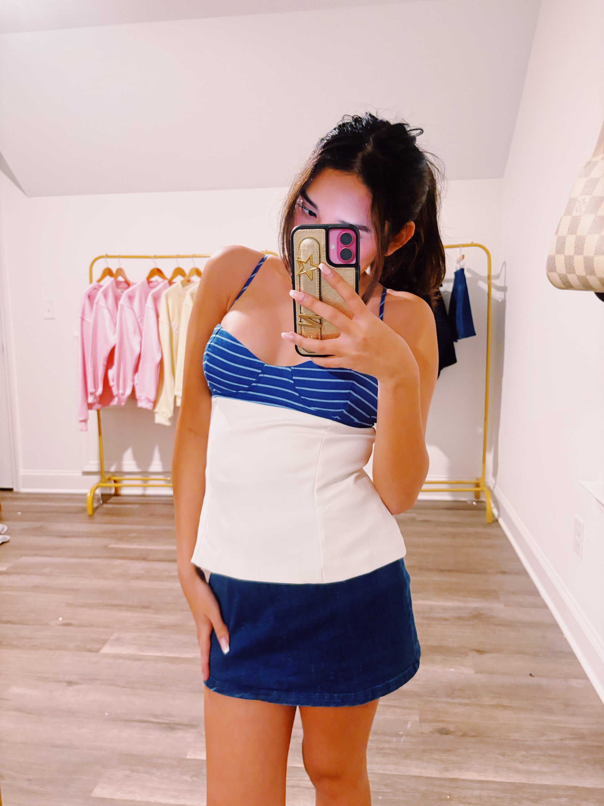 Model is 4'11" 106 pounds wearing a size Small