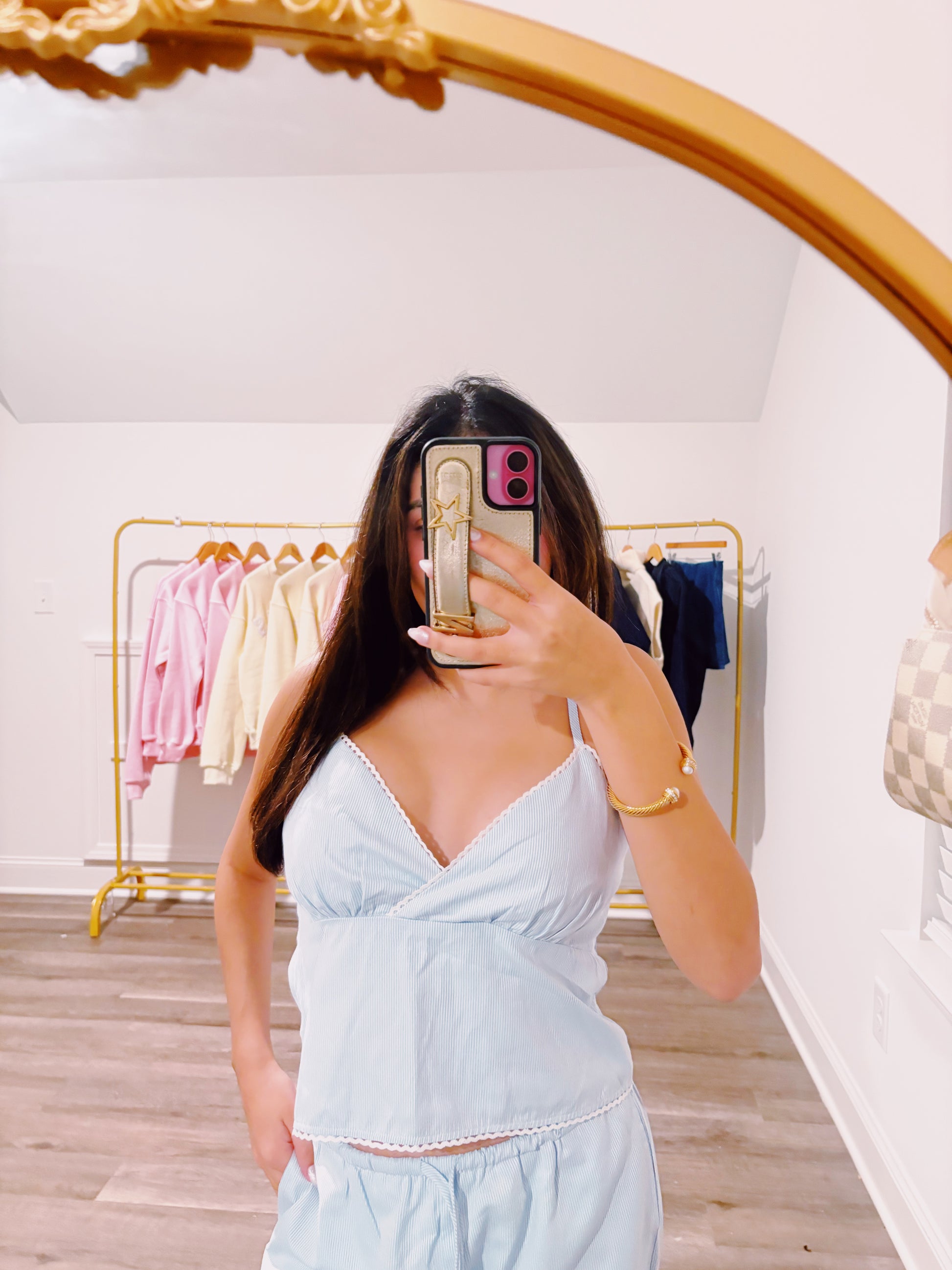 Stay stylish in this light blue striped linen tank top and pants set. Made from breathable fabric, this comfortable set is perfect for warm days. The relaxed fit offers all-day comfort, while the simple design adds a touch of effortless style. Ideal for casual outings or lounging at home.